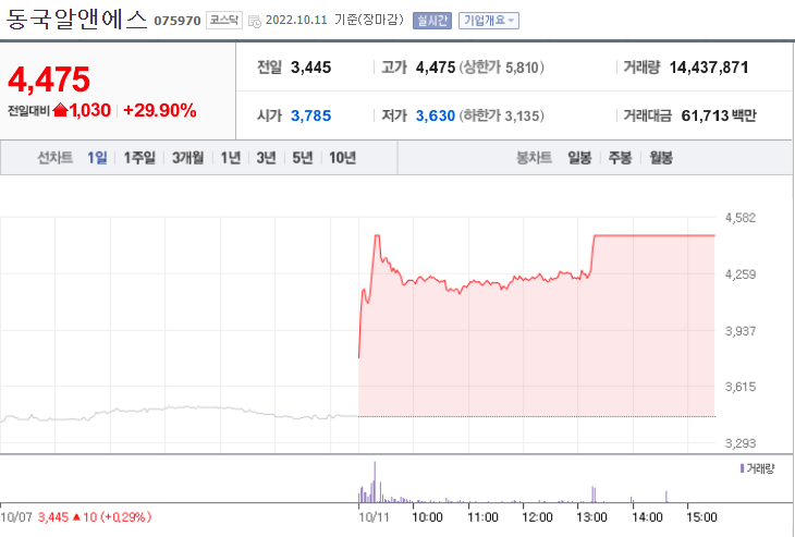 동국알앤에스는 희토류 관련주로 새롭게 부각되면서 대장주의 모습을 보여 주고 있습니다.